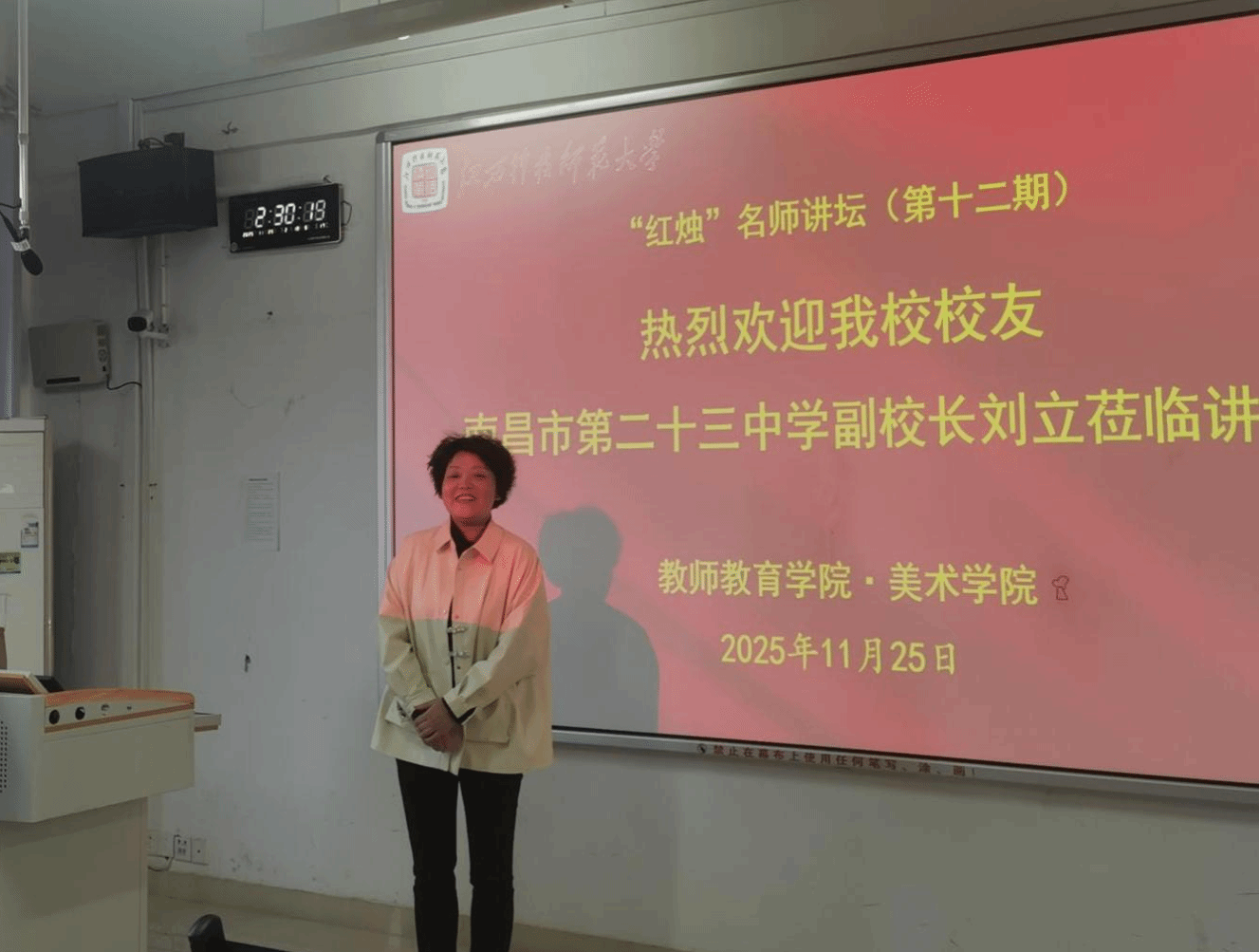 11 月 25 日下午,由教师教育学院与美术学院联合主办的 “红烛” 名师讲坛第十二讲在红角洲校区逸夫楼 Y309 教室举行。讲坛特邀我校 1997 届服装设计专业优秀校友、南昌市第二十三中学副校长刘立主讲。