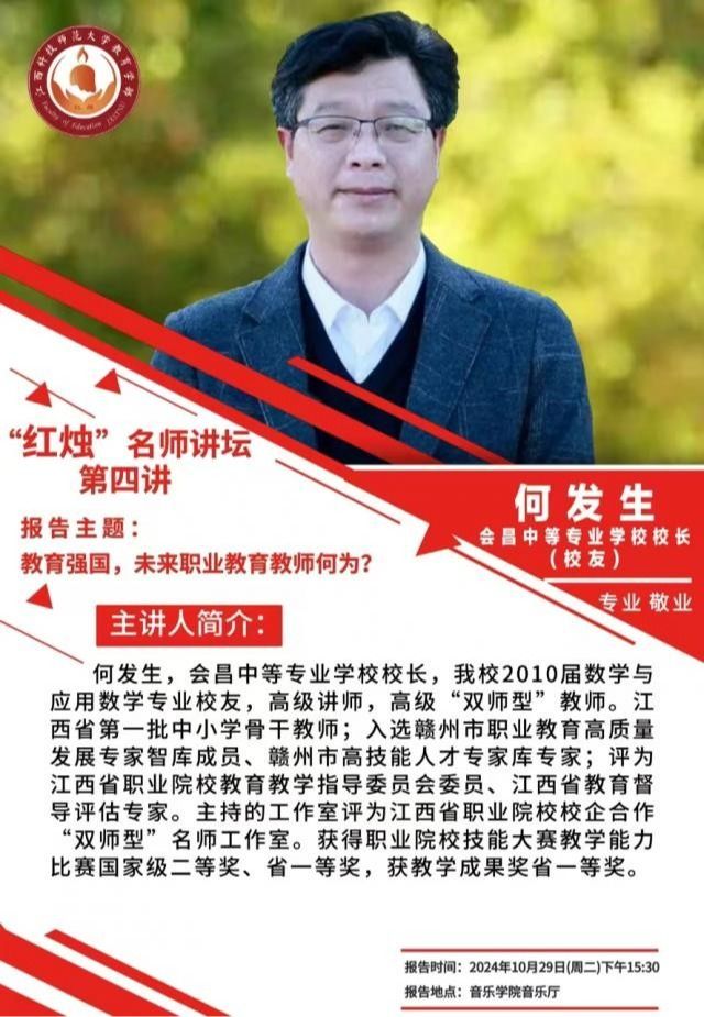 讲座通知:【“红烛”名师讲坛第四讲】教育强国,未来职业教育教师何为?