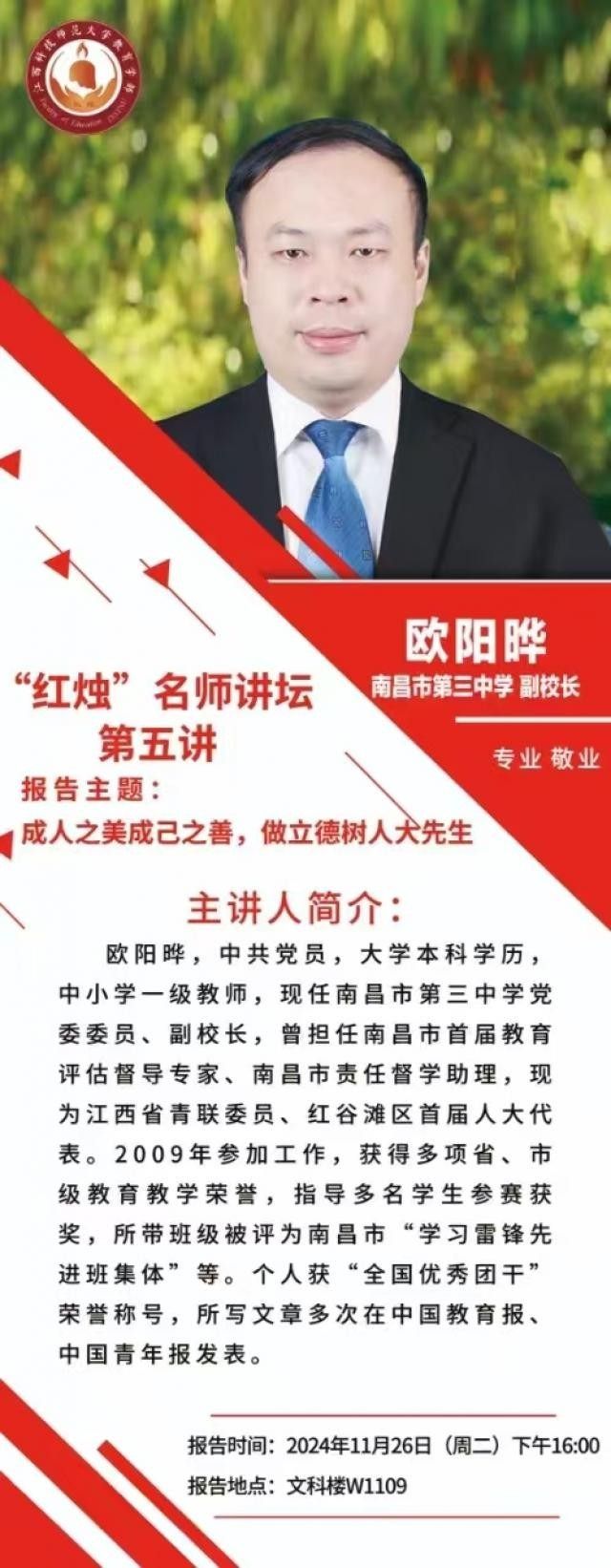 讲座通知:【“红烛”名师讲坛第五讲】成人之美成己之善,做立德树人大先生