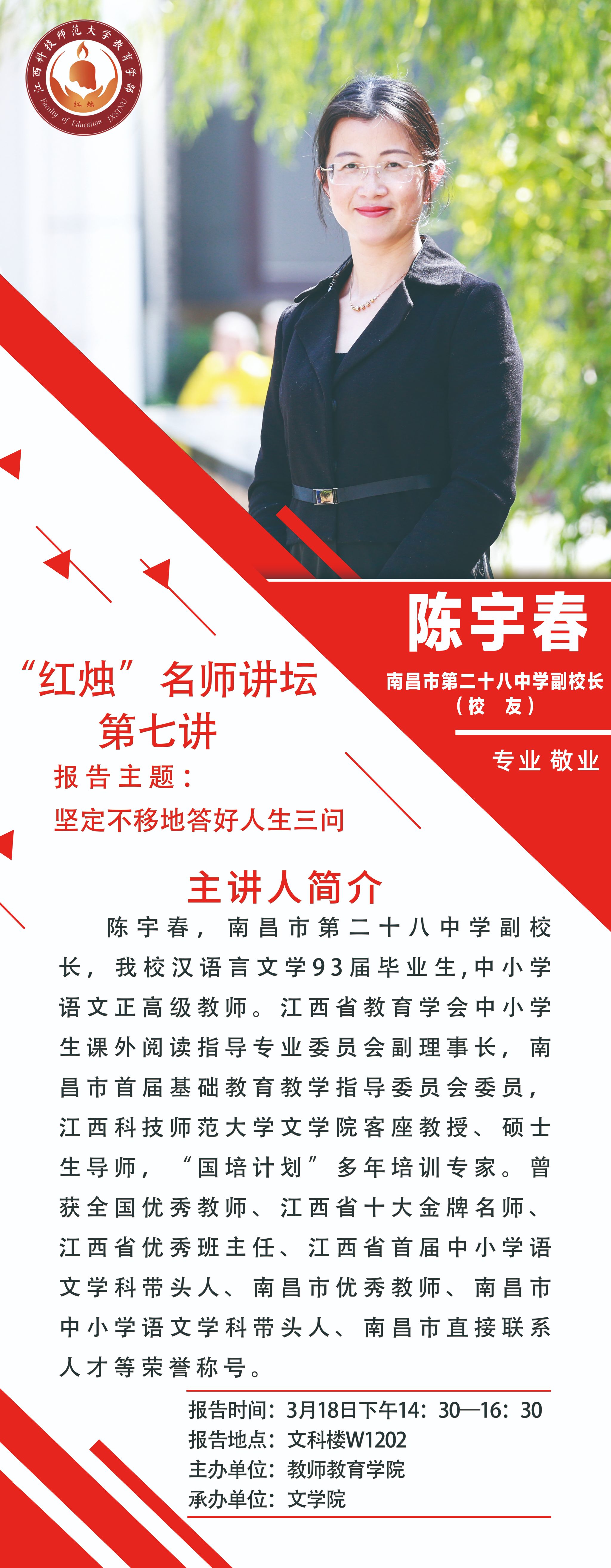 【“红烛”名师讲坛第七讲】陈宇春:坚定不移地答好人生三问
