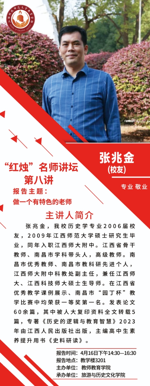 讲座通知:【"红烛"名师讲坛第八讲】做一个有特色的老师