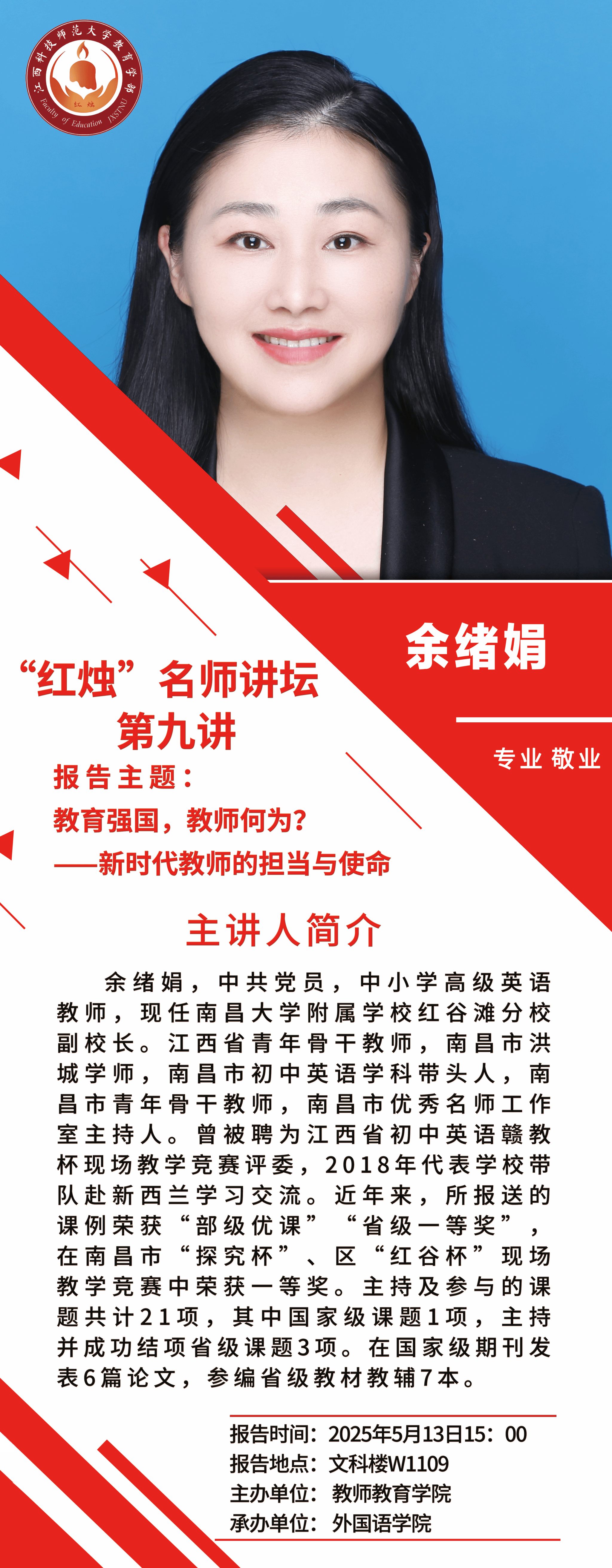 讲座通知:【"红烛"名师讲坛第九讲】教育强国,教师何为——新时代教师的担当与使命